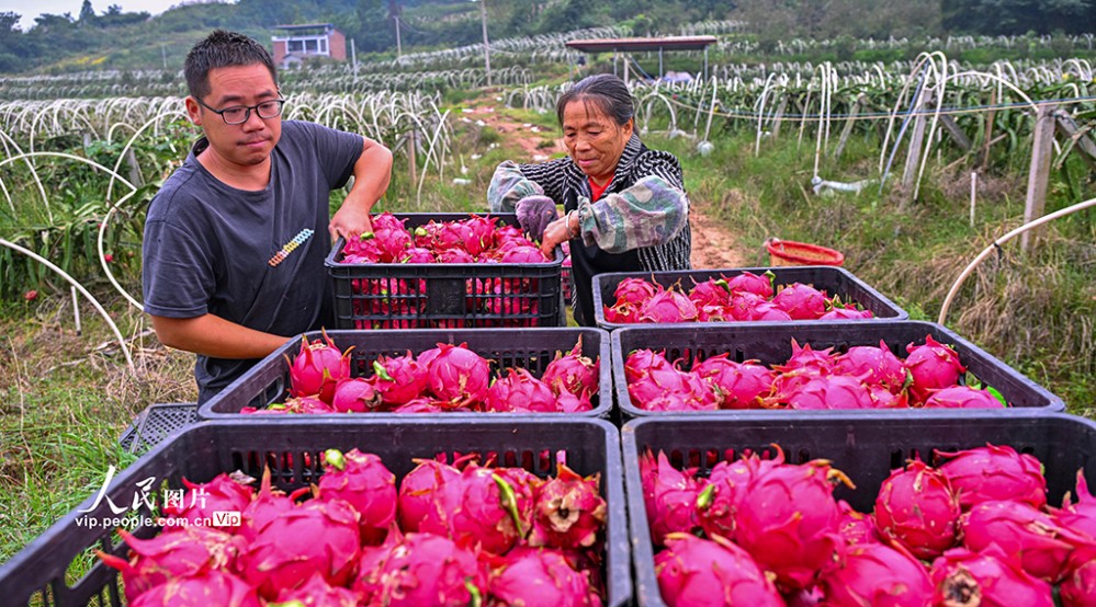 連日來,四川省眉山市仁壽縣懷仁街道吊慶社區(qū)的火龍果喜迎豐收,果農(nóng)們忙著采摘、轉(zhuǎn)運(yùn),供應(yīng)市場(chǎng)。