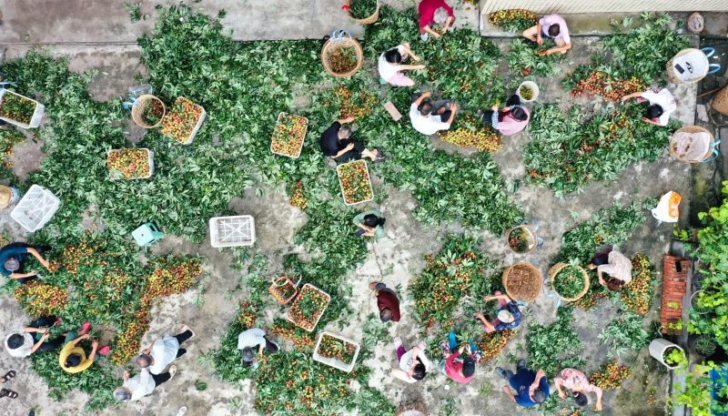堆滿(mǎn)竹筐的農(nóng)家小院,成為臨時(shí)的分揀戰(zhàn)場(chǎng)。果農(nóng)們圍著塑料筐蹲坐,麻利地將帶枝荔枝修剪裝箱。“我們果園今年妃子笑產(chǎn)量預(yù)計(jì)達(dá)100000斤以上。”農(nóng)場(chǎng)負(fù)責(zé)人曾浩洋介紹,“目前每天組織10余名工人進(jìn)行采摘,日均產(chǎn)量保持在4000至5000斤。”