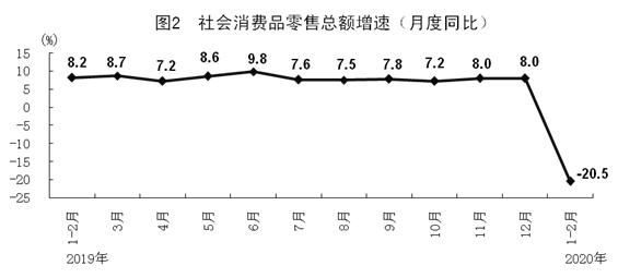根據(jù)第四次全國(guó)經(jīng)濟(jì)普查結(jié)果對(duì)2019年社會(huì)消費(fèi)品零售總額進(jìn)行了修訂,2020年1-2月份增速按照可比口徑計(jì)算。