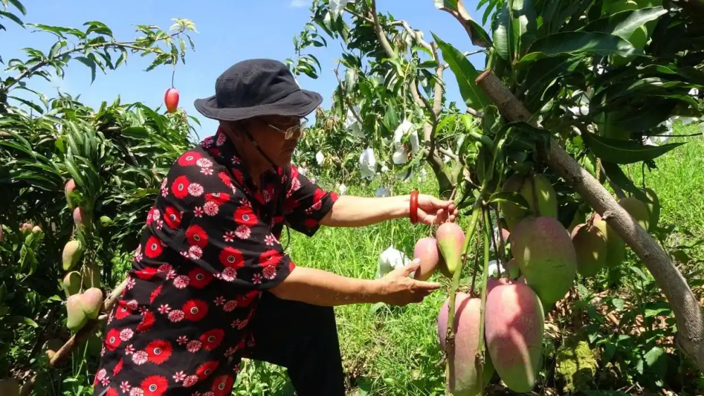“我家種了150棵樹水蜜桃芒果,今年通過技術升級,產(chǎn)量增加了。今年的產(chǎn)量應該在7000到7500公斤,差不多一棵樹有50公斤的產(chǎn)量?!崩畹麓赫f。