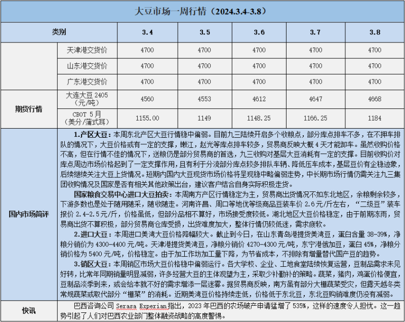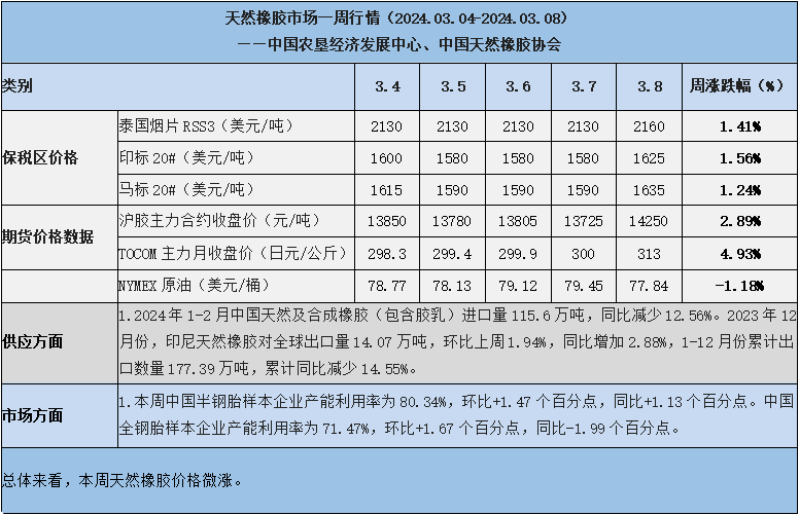 天然橡膠、大豆、玉米市場一周行情(2024.03.04-03.08)