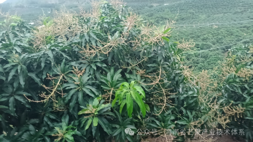 揚(yáng)花期果園受臺風(fēng)影響情況,部分花絮掉落,少數(shù)斷枝(2024年9月7日拍攝于三亞崖州坡加村一果園)