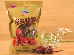 天山嬌干棗,原料多來自哈密大棗。哈密大棗是中國紅棗家族中一個(gè)相對(duì)獨(dú)立的優(yōu)良品種,是在新疆哈密由南平原戈壁特定氣候條件下經(jīng)長期馴化生成的果中珍品。古代謂之“香棗”,一直是獻(xiàn)給朝廷的上乘西域貢品。據(jù)史料考證,哈密栽培大棗已有兩千年的歷史,以其個(gè)大、皮薄、核小、肉厚、顏色好、含糖量高、干而不皺等優(yōu)點(diǎn),在國內(nèi)外市場(chǎng)上馳名。