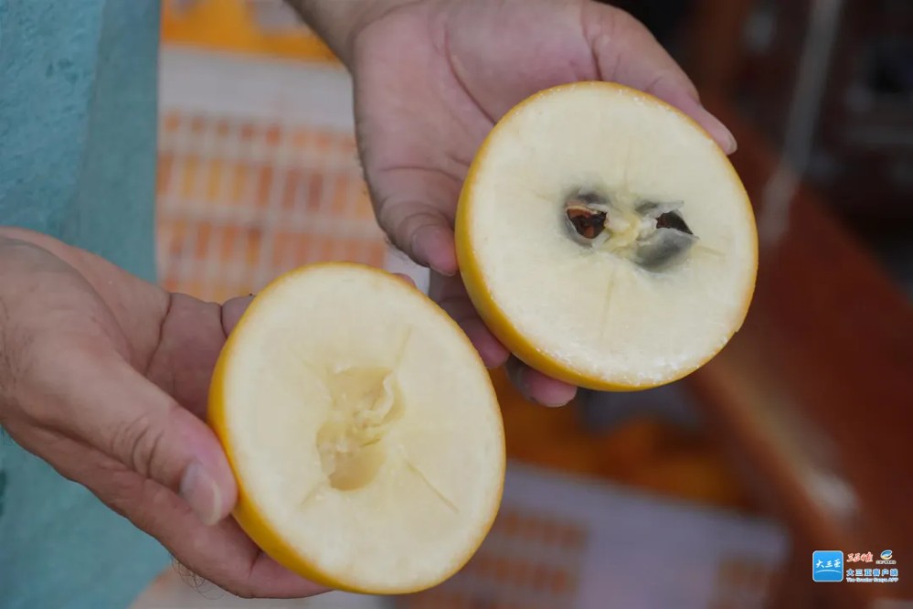 黃晶果又稱黃金果,其奶白色膠質(zhì)果肉甜度最高可達(dá)30度,因富含膠原蛋白和果膠被譽(yù)為“果中燕窩”。這種原產(chǎn)南美洲的亞熱帶水果,經(jīng)改良品種引進(jìn)后,在三亞山區(qū)成功扎根,不僅豐富了國(guó)人的“果盤子”,也為當(dāng)?shù)剞r(nóng)民增收和產(chǎn)業(yè)升級(jí)開辟了新路徑。
