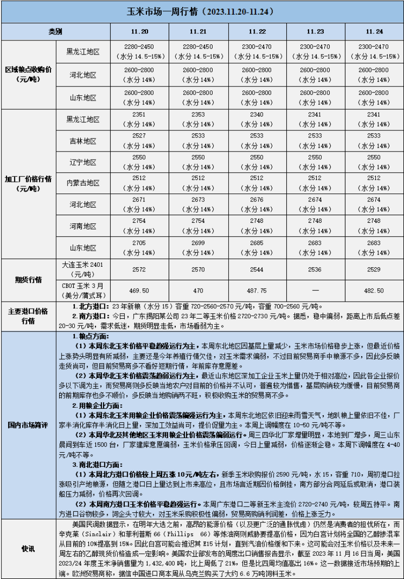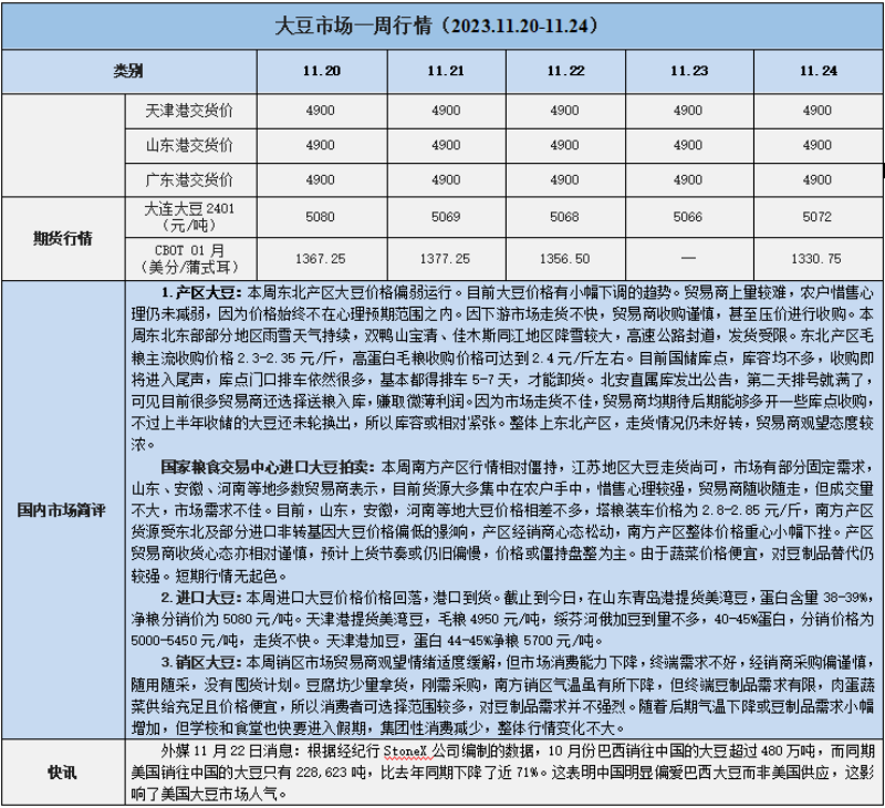 天然橡膠、大豆、玉米市場一周行情(2023.11.20-11.24)