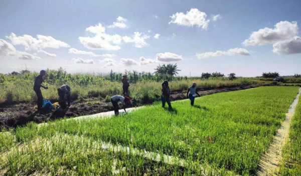 走進(jìn)位于莫桑比克林波波河畔的湖北-加扎友誼農(nóng)場(chǎng),映入眼簾的是一大片綠油油的稻田,微風(fēng)拂過,稻浪翻滾,煥發(fā)勃勃生機(jī)。當(dāng)前正處于早稻田間管理的關(guān)鍵時(shí)期,到處是一片熱火朝天、欣欣向榮的繁忙景象,農(nóng)場(chǎng)技術(shù)人員帶領(lǐng)著當(dāng)?shù)剞r(nóng)戶深入田間地頭,根據(jù)不同地塊水稻生長(zhǎng)情況,積極開展田間管理,進(jìn)行除草、殺蟲、撒肥、疏渠、灌溉等各項(xiàng)農(nóng)事工作,為早稻豐收奠定堅(jiān)實(shí)基礎(chǔ)。