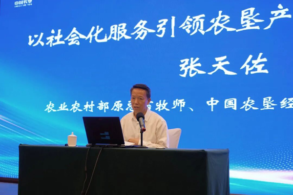 張?zhí)熳糇黝}為《以社會化服務(wù)引領(lǐng)農(nóng)墾產(chǎn)業(yè)高質(zhì)量發(fā)展》的主旨報告。報告從農(nóng)業(yè)生產(chǎn)的基本經(jīng)營形式、農(nóng)業(yè)現(xiàn)代化的本質(zhì)、中國式農(nóng)業(yè)現(xiàn)代化路子怎么走、如何加速我國農(nóng)業(yè)現(xiàn)代化進程、社會化服務(wù)發(fā)展具備的機遇等六個方面進行了系統(tǒng)闡述,強調(diào)“要大力發(fā)展專業(yè)化社會化服務(wù),使之成為引領(lǐng)農(nóng)墾產(chǎn)業(yè)高質(zhì)量發(fā)展的牛鼻子”,所提出的推進社會化服務(wù)發(fā)展的8個策略和方法為深化農(nóng)墾社會化服務(wù)、推動產(chǎn)業(yè)升級提供了重要的指導(dǎo)和參考。
