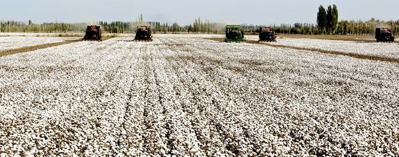 金秋時節(jié)的塔里木盆地,藍(lán)天碧日之下,雪白的棉團(tuán)就像白頭浪層層滾來,直接天際。這樣的盛景,展示了幾代兵團(tuán)戰(zhàn)士鑄劍為犁、科學(xué)植棉鑄就的“白色豐碑”。2003年,新疆兵團(tuán)創(chuàng)建的“新農(nóng)”牌長絨棉在“烏洽會”“廣交會”上倍受青睞;從此,“新農(nóng)”品牌棉花蜚聲中外。
