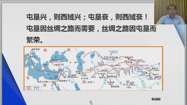 任新農(nóng)副校長(zhǎng)結(jié)合自己多年來對(duì)新疆屯墾、西域文化、兵團(tuán)歷史、三五九旅精神的研究,從古到今,由遠(yuǎn)及近,向觀眾娓娓講述了西域新疆屯墾的歷史脈絡(luò),展現(xiàn)了西域新疆色彩斑斕的歷史和人文畫卷??梢哉f,一部古代的西域新疆的屯墾戍邊史,就是一部西域新疆社會(huì)文明進(jìn)步史,它貫穿了西域新疆社會(huì)發(fā)展的全過程。從古代新疆屯墾的“都護(hù)絲路”、“屯田積谷、應(yīng)對(duì)邊事”,到現(xiàn)代兵團(tuán)的“屯墾戍邊、建城戍邊”,使命基本一致,初衷目標(biāo)均為“戍邊”。