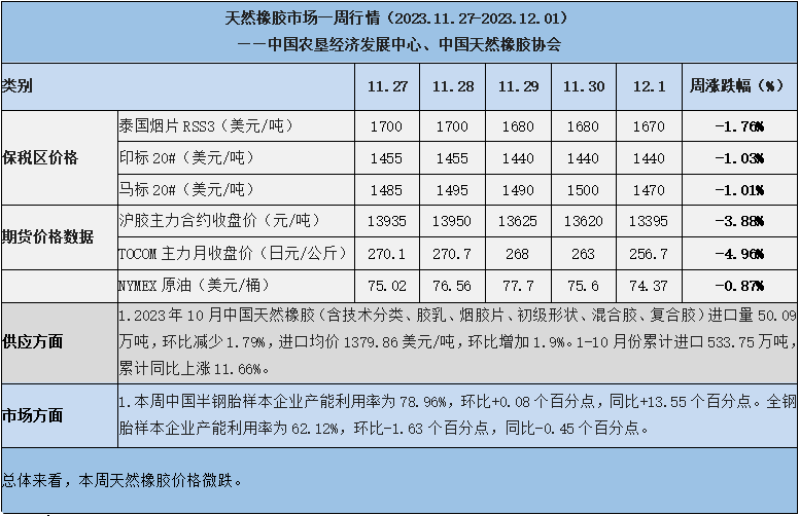 天然橡膠、大豆、玉米市場一周行情(2023.11.27-12.01)