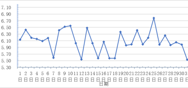 12月,全國重點(diǎn)監(jiān)測(cè)農(nóng)產(chǎn)品批發(fā)市場香蕉總交易量達(dá)2.4萬噸,同比下降14.3%,環(huán)比基本持平;總交易價(jià)值13441.7萬元,同比下降20.3%,環(huán)比下降7.0%。日平均價(jià)格最高為6.8元/千克,最低為5.5元/千克,全月平均價(jià)格為6.1元/千克,同比上漲5.2%,環(huán)比下降4.7%(每日價(jià)格變化如圖)。