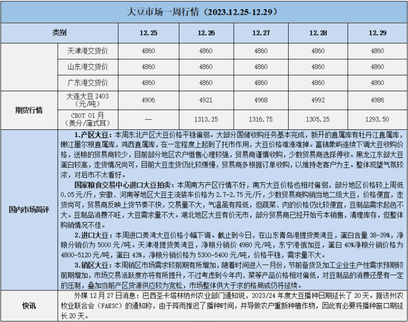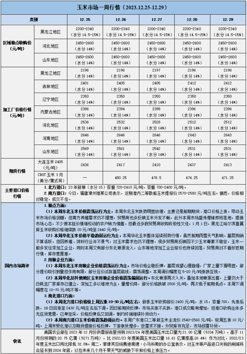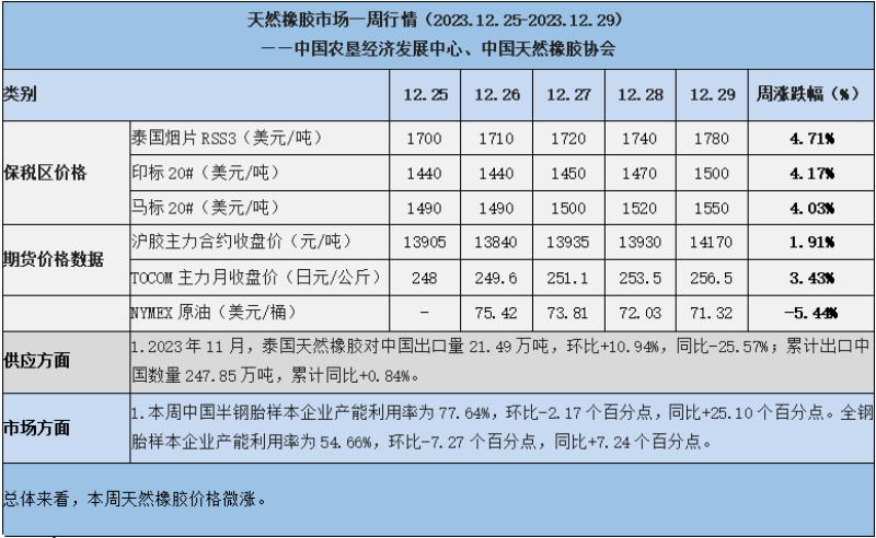 天然橡膠、大豆、玉米市場(chǎng)一周行情(2023.12.25-12.29)