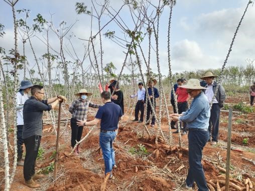以廣西亞熱帶作物研究所李軍農(nóng)研究員為組長,熱科院品資所劉國道研究員、李開綿研究員、陳松筆研究員和熱科院環(huán)植所陳青研究員為成員的專家組,在大豐農(nóng)場美玉村木薯基地對申請品種進(jìn)行了現(xiàn)場測產(chǎn)與品質(zhì)鑒定,并認(rèn)真聽取了選育團(tuán)隊(duì)對木薯“華南22號”新品種選育情況的匯報(bào),就有關(guān)問題進(jìn)行了質(zhì)詢,一致同意木薯“華南22號”通過現(xiàn)場鑒評。