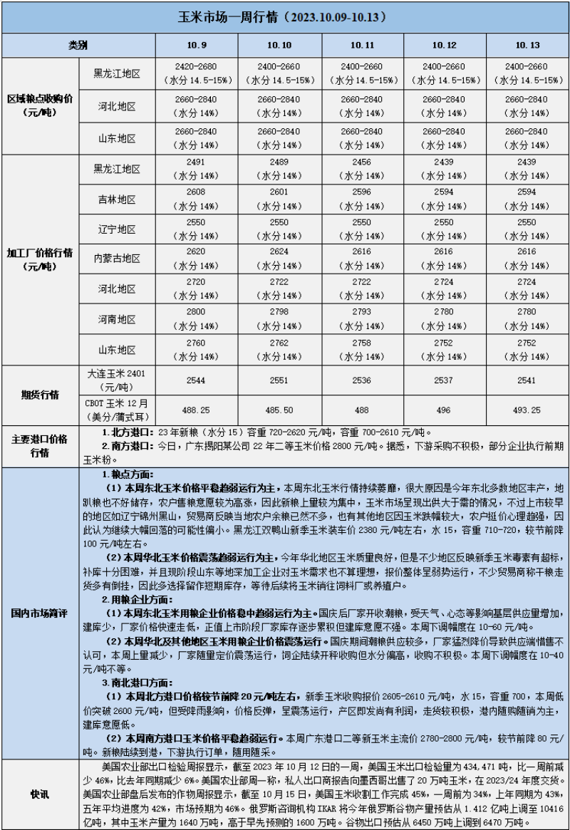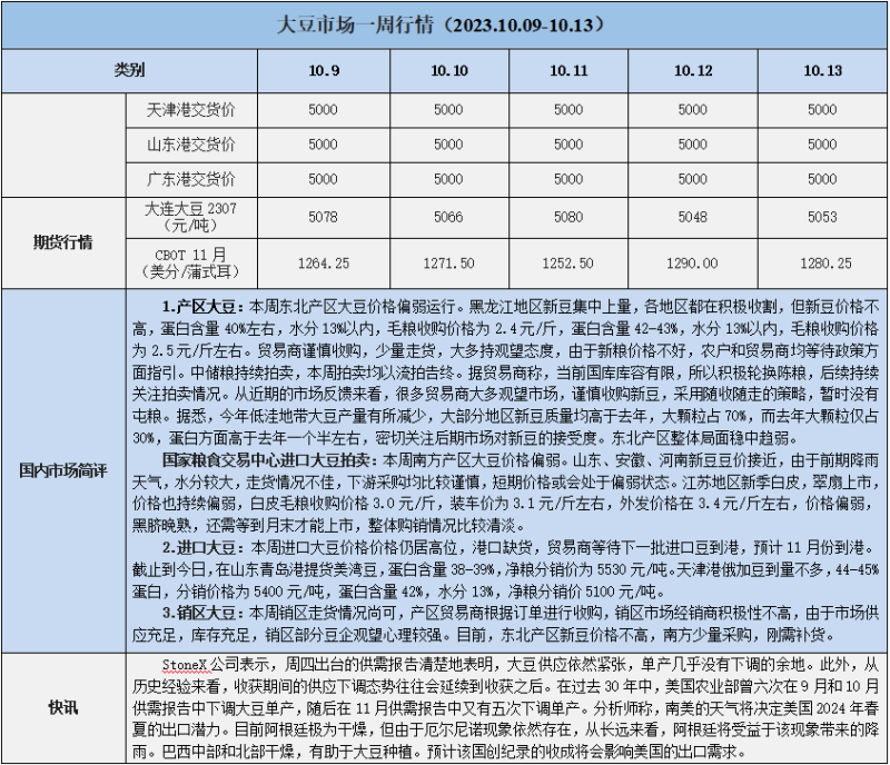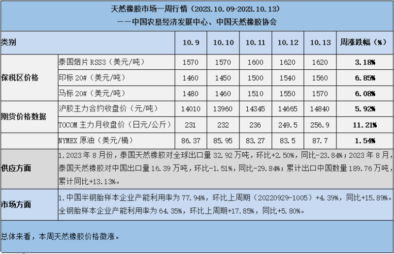 天然橡膠、大豆、玉米市場一周行情(2023.10.09-10.13)