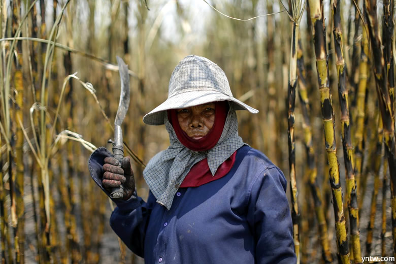 泰國Ratchaburi 省一名蔗農勞作時給記者擺拍(Reuters)