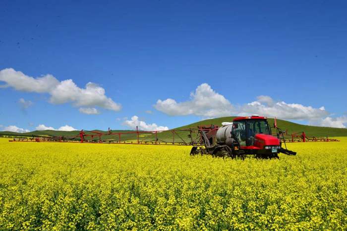 《你走起來真好看》 呼倫貝爾農(nóng)墾拉布大林農(nóng)牧場有限公司自走式噴藥機(jī)作業(yè)。王浩 攝