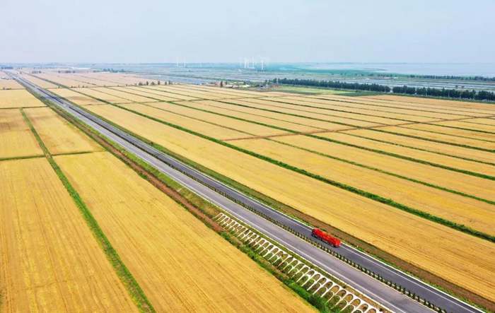 《沃野流金》 安徽農(nóng)墾華陽河農(nóng)場高標(biāo)準(zhǔn)農(nóng)田種植的小麥進(jìn)入成熟期,處處風(fēng)景如畫。李龍 攝