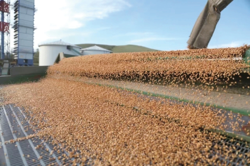 免渡河農(nóng)牧場收獲的小麥正在進(jìn)行篩選,等待烘干后入倉?!⊥踯帯z