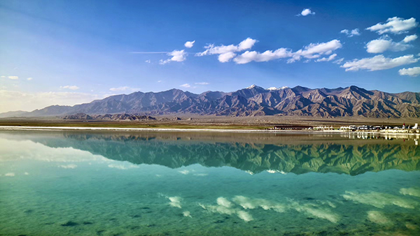 大柴旦翡翠湖位于青海省海西蒙古族藏族自治州境內(nèi),形態(tài)迥異、深淺不一的鹽池宛如一塊塊晶瑩剔透的“翡翠”。約6平方公里的“翡翠湖”名為大柴旦湖,是原大柴旦化工廠鹽湖采礦隊采礦區(qū),經(jīng)多年開采形成采坑,變成了如今美麗的“翡翠湖”。站在湖邊,宛若鏡面般的湖面倒影著藍(lán)天白云和皚皚雪峰,宛如仙境。