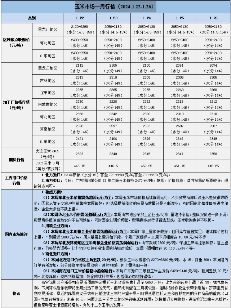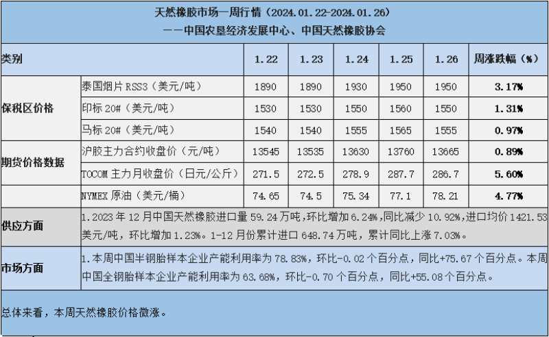 天然橡膠、大豆、玉米市場一周行情(2024.1.22-1.26)