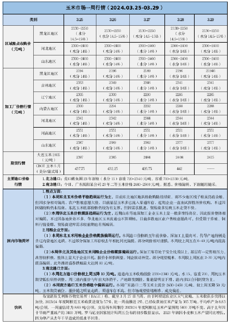 天然橡膠、大豆、玉米市場一周行情(2024.03.25-03.29)