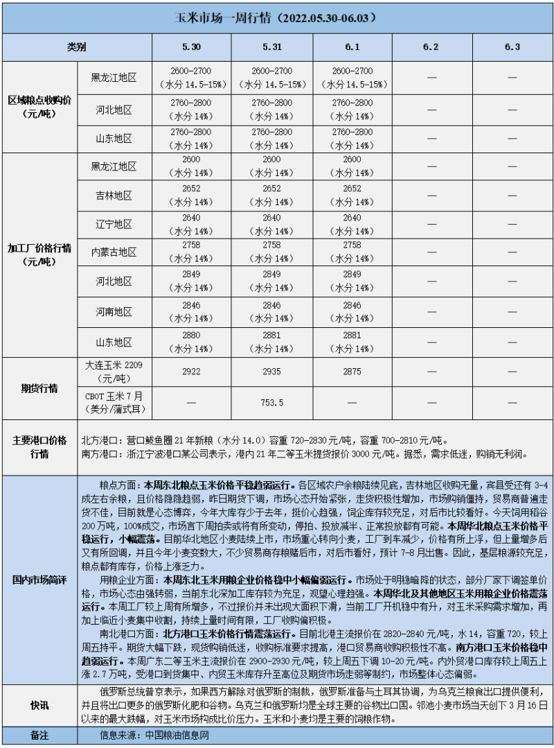 天然橡膠、大豆、玉米市場一周行情(2022.05.30-06.03)