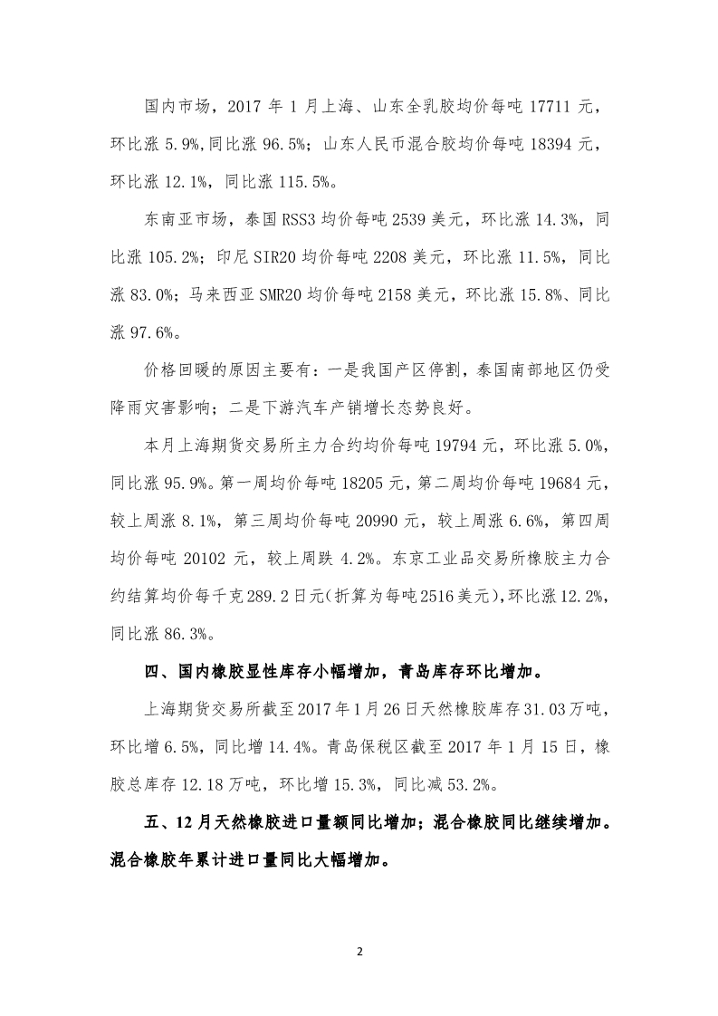 2017年1月天然橡膠市場監(jiān)測會商報(bào)告