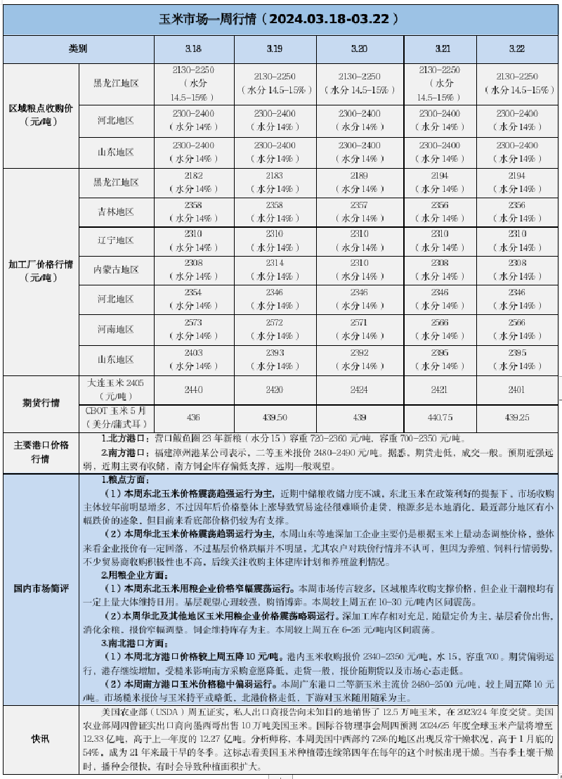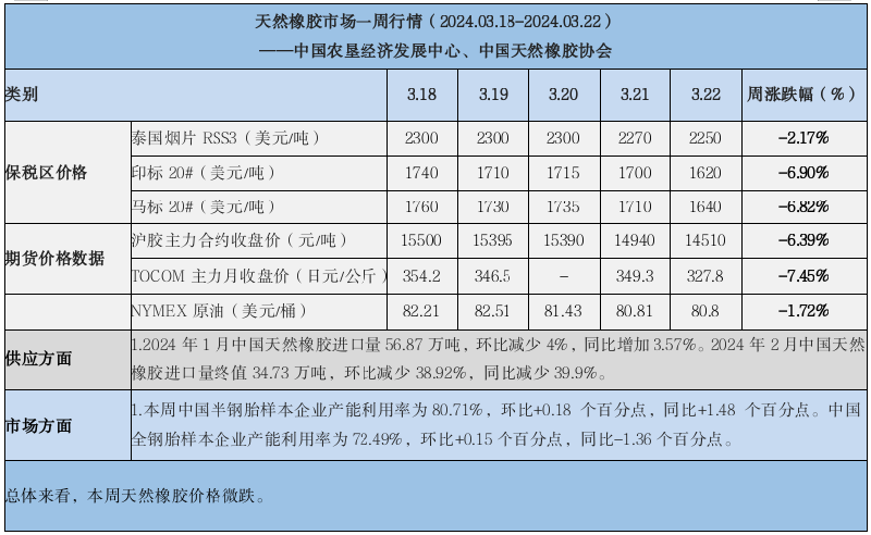 天然橡膠、大豆、玉米市場(chǎng)一周行情(2024.03.18-03.22)