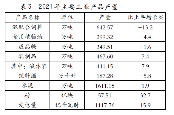 主要工業(yè)產(chǎn)品產(chǎn)量見表3。