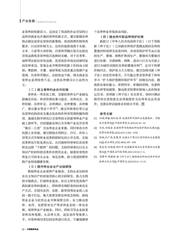 我國熱作商業(yè)化育種現(xiàn)狀、問題及對策研究